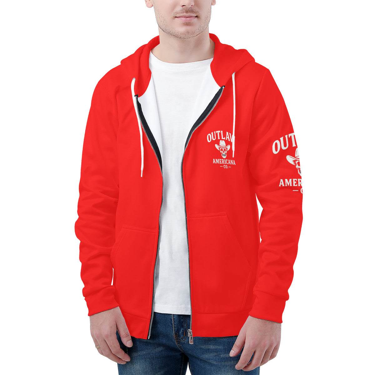 • Polyester blend material for men's hoodie.