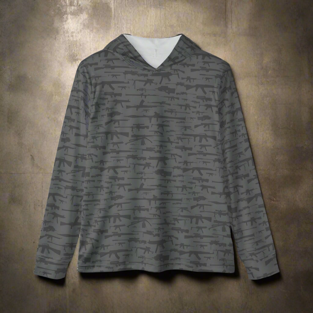 Our Global Arsenal Camo Hoodie features an intricate array of small arms weapons from around the world, creating a one-of-a-kind camouflage pattern. This hoodie blends international firepower with everyday comfort, making it perfect for the range, outdoor adventures, or simply showcasing your passion for all things tactical. Made from high-quality materials, it ensures durability and warmth while turning heads with its distinctive design.